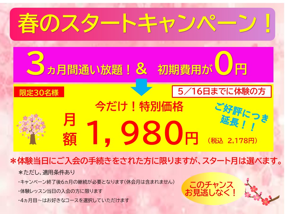 🌸春のキャンペーン🌸 ご好評につき5/16まで延長します!!